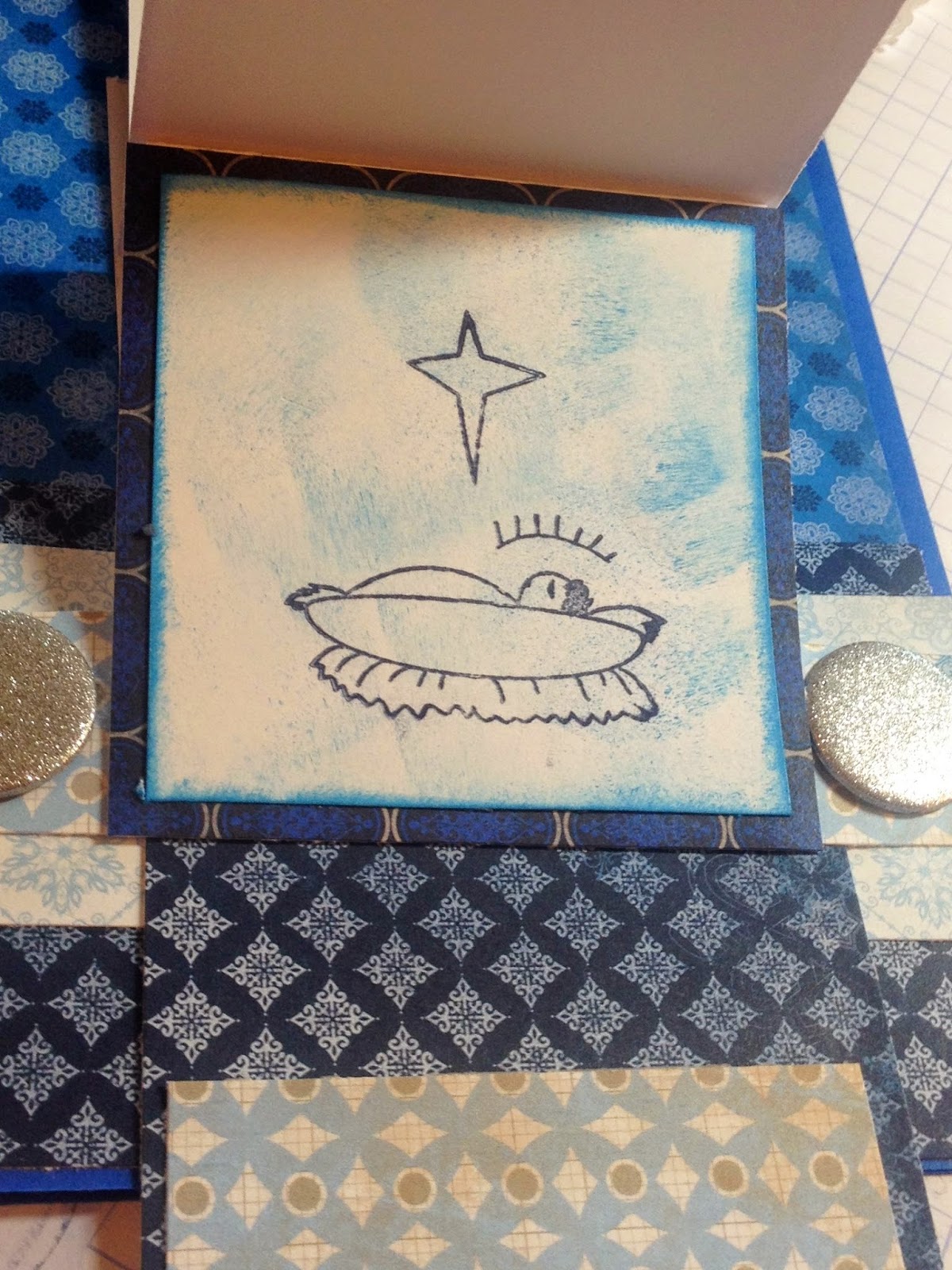 The stamped image was one I deemed "unworthy" for a card because I didn't like how her face turned out after adding too many freckles. But she's perfect for a gift tag that will be barely glanced at as the recipient rips it off with the wrapping paper! The Hymn wings were just extras from a day of card making. The tag, trim and tinsel were also in the leftover jar. I wanted to stamp a word on the bottom of the tag but was limiting myself to a strictly "leftover" project. The recipient's name could be written at the bottom as well.